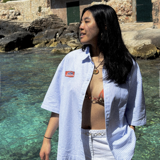 GAS STATION SHIRT S/S BLUE STRIPES - homeboy
